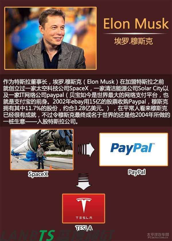 2003年7月1日,馬丁·艾伯哈德與長期商業(yè)伙伴馬克·塔彭寧合伙成立特斯拉(TESLA)汽車公司。但由于艾伯哈德毫無這方面的制造經(jīng)驗,最終找到AC Propulsion公司。在AC Propulsion公司CEO的引見下,穆斯克認識了艾伯哈德的團隊并向TESLA投資630萬美元,最終出任公司董事長、擁有所有事務(wù)的最終決定權(quán)。但是后來由于艾伯哈德與高層管理的矛盾激化,于是被迫要求離開公司,他本人只作為特斯拉公司的一個股東存在。而穆斯克當任董事兼CEO全面掌握了特斯拉并帶領(lǐng)著特斯拉走上了一條汽車革命者的道路。