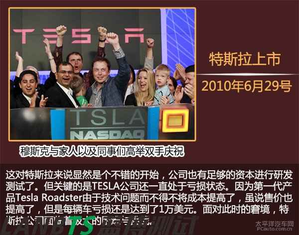 可以說,這三筆錢把Tesla從懸崖邊拉了回來。在熬過這段艱難的時光后,Tesla的資金情況逐漸好轉(zhuǎn)。2010年特斯拉在納斯達克上市,融資額達2.26億美元。開盤當日,穆斯克也在帳面上力挽狂瀾地賺了6億3千萬美元。而上市之后,特斯拉股價在一周之內(nèi)飆升40%,市值一度超過100億美元,將老牌汽車公司菲亞特、三菱甩在身后。